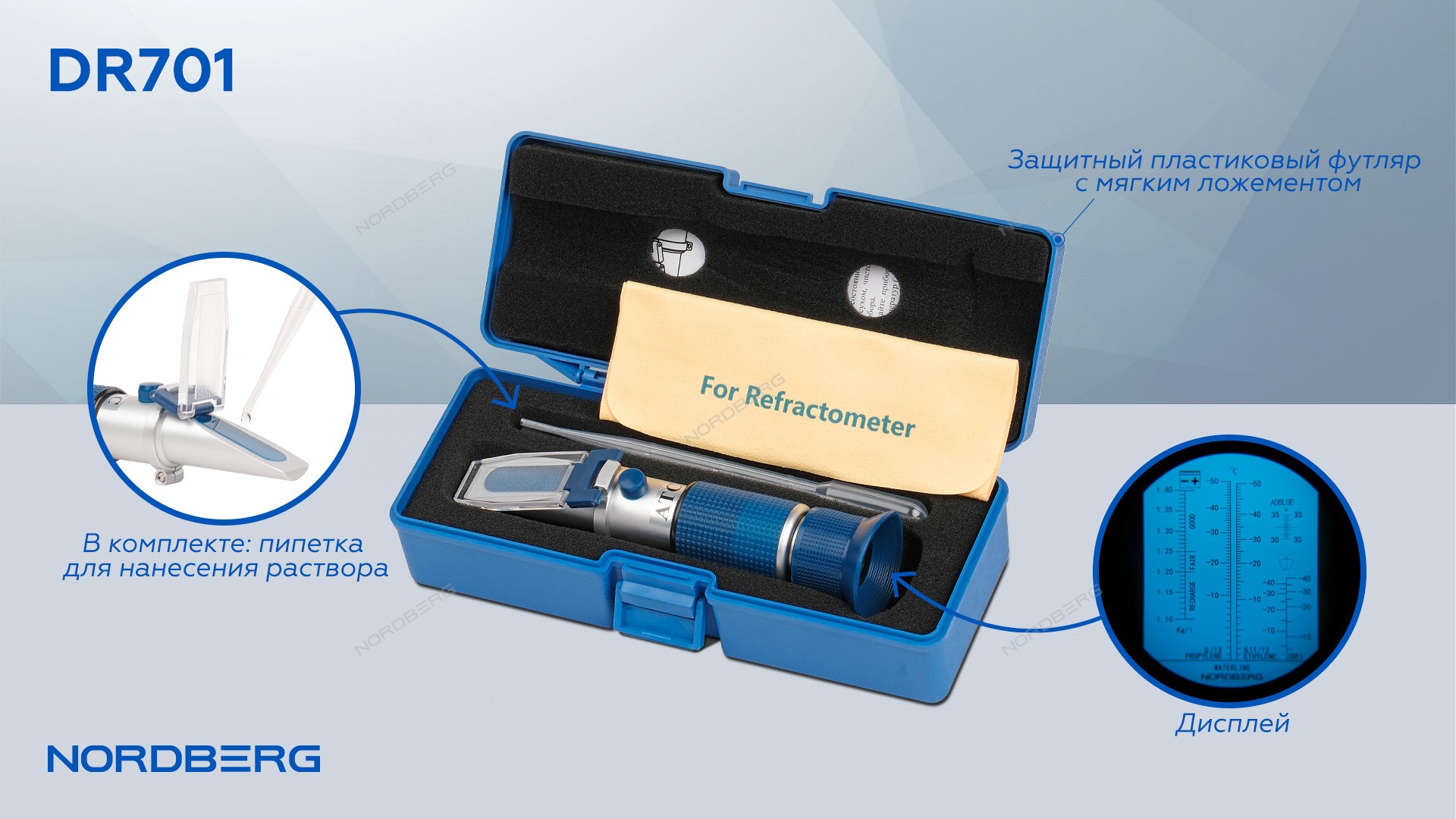 Рефрактометр NORDBERG DR701 – специальный портативный прибор для измерения различных показателей автомобильных технических жидкостей.