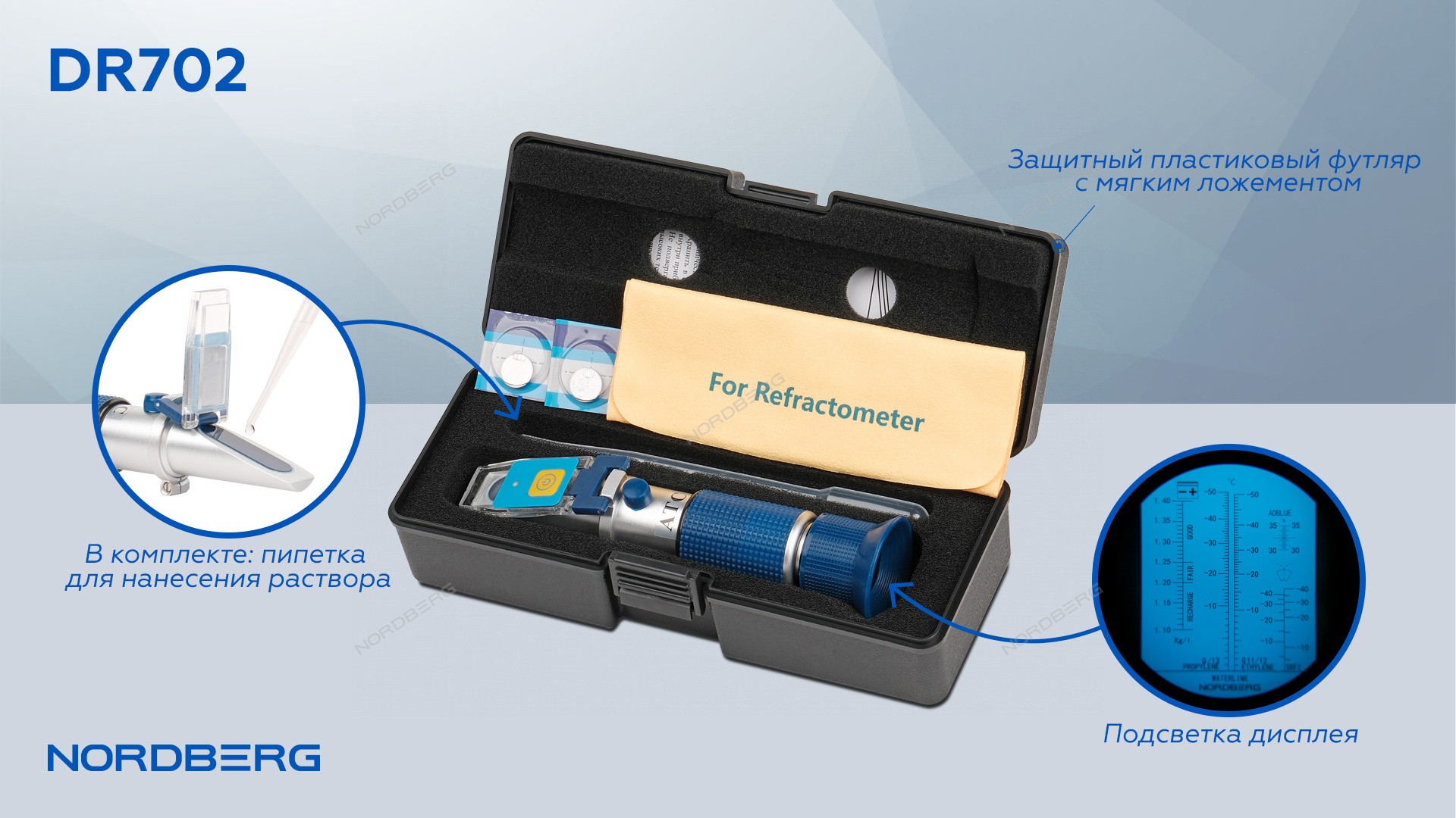 Рефрактометр для омывающей, охлаждающей, аккумуляторной жидкости и AdBlue с подсветкой Nordberg DR702 характеристики