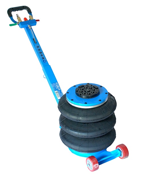 Пневматический домкрат 3-секционный с ручкой T08103A AE&T 3т используется для подъема автомобиля с целью ремонта или обслуживания (например, замены колеса). Сжатый воздух можно подавать как напрямую с компрессора, так и по магистрали, которая имеется в крупных автосервисах. Домкрат удобен в хранении благодаря малым габаритам и весу.
