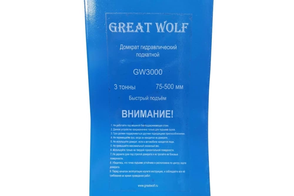 Низкопрофильный гидравлический подкатной домкрат GW-3000 3т, 75-500 мм Great Wolf характеристики