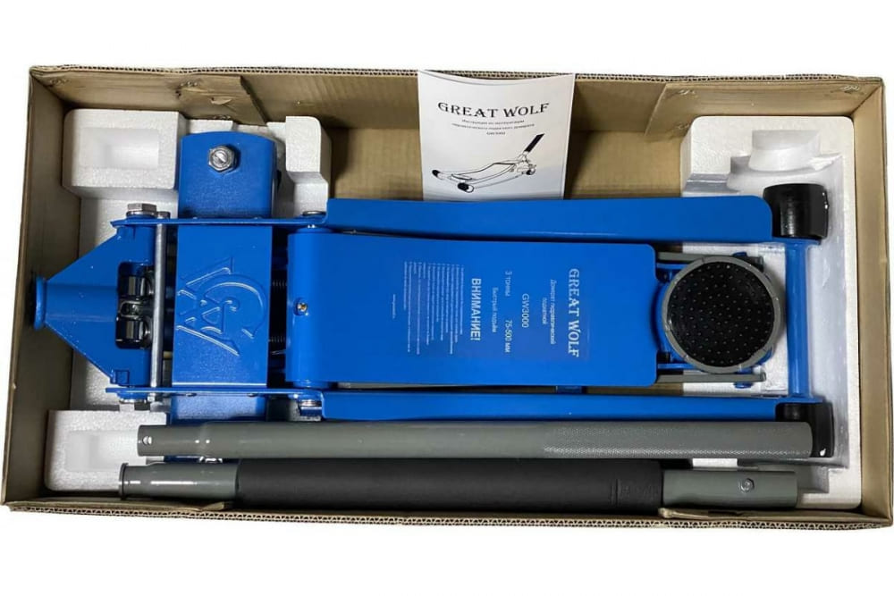 Низкопрофильный гидравлический подкатной домкрат Great Wolf 3 т, 75-500 мм GW-3000 используется для плавного поднятия груза, для шиномонтажа или выполнения работ по ремонту ходовой части.