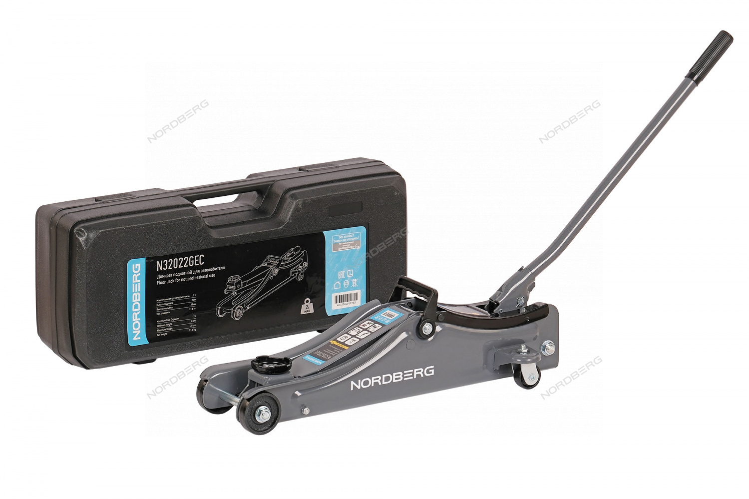 Домкрат подкатной для автолюбителя в кейсе, 2 т NORDBERG N32022GEC характеристики