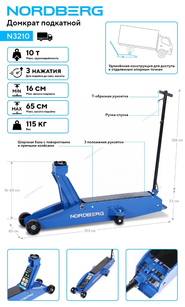 NORDBERG N3210 — это надёжный домкрат, обеспечивающий безопасный подъём и удобство эксплуатации при работе.