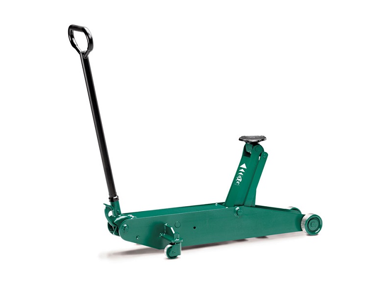 Длинная удобная ручка позволяет без особых трудозатрат установить домкрат в любое место под автомобилем, а педаль за минимальное время поднимет опорную площадку под авто.