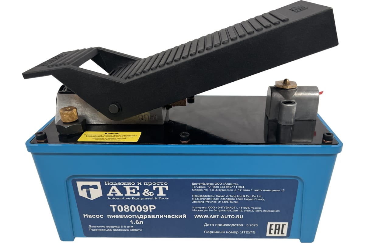 Насос пневмогидравлический 1.6л с шлангом AE&T T08009P характеристики