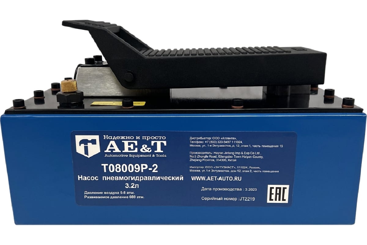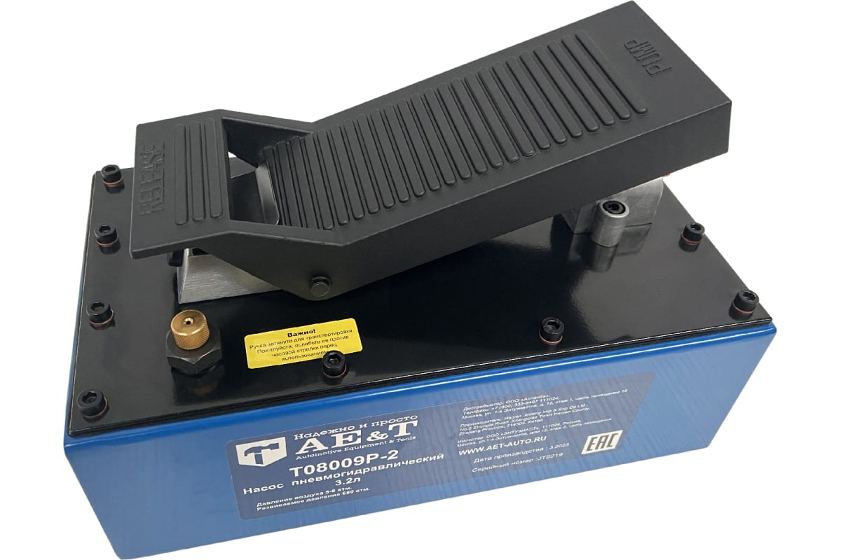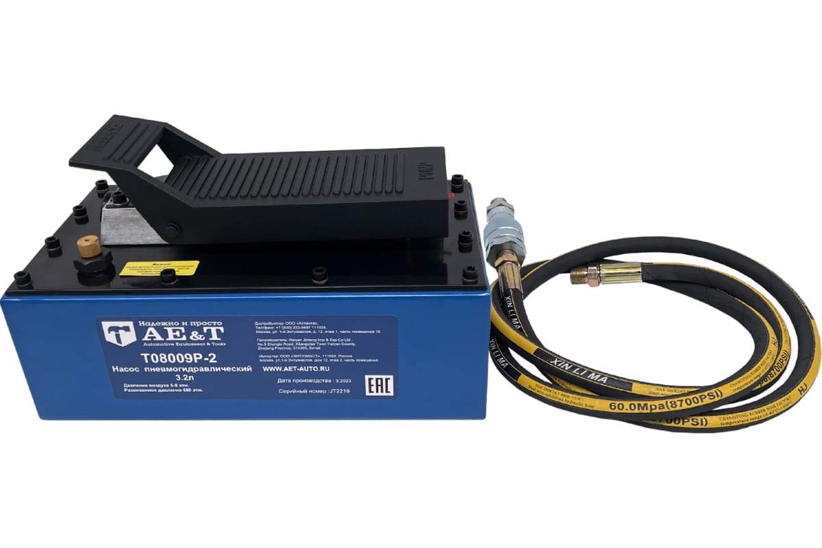 Насос пневмогидравлический 3.2л с шлангом AE&T T08009P-2 характеристики