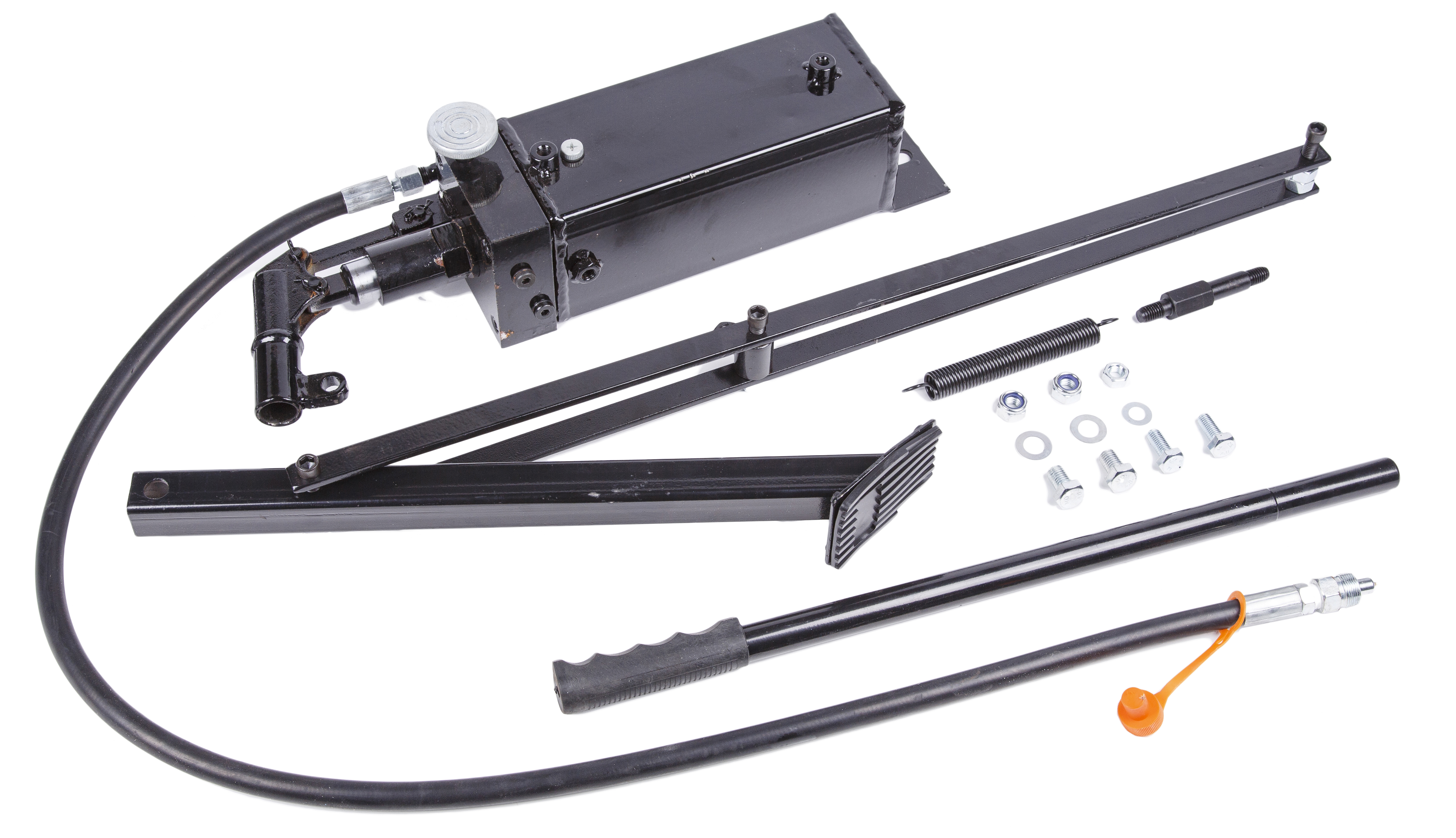 Гидравлический насос с ручным или ножным приводом выполняет роль преобразователя механической энергии в гидравлическую. Данный тип насосов наиболее распространен из-за их невысокой стоимости и простоты конструкции. Создаваемое насосом давление позволяет применять его в гидравлических системах с высоким давлением. В зависимости от типа привода, управление насосом производится рукояткой или ножной педалью. Наличие аварийного клапана давления защищает насос и исполнительные механизмы от перегрузок.