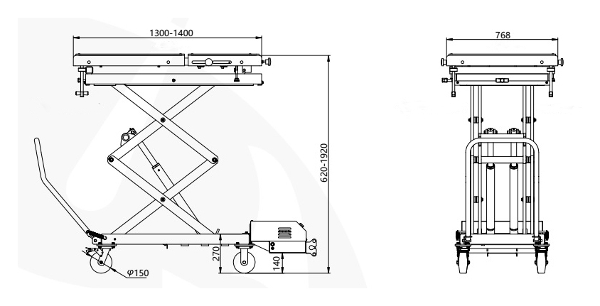 - Длина платформы регулируется в пределах 1300-1400 мм