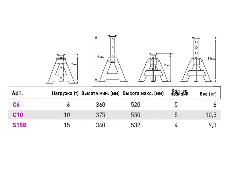 Опорные стойки применяются для безопасного удержания автомобиля на необходимой высоте после его поднятия, например, домкратом.