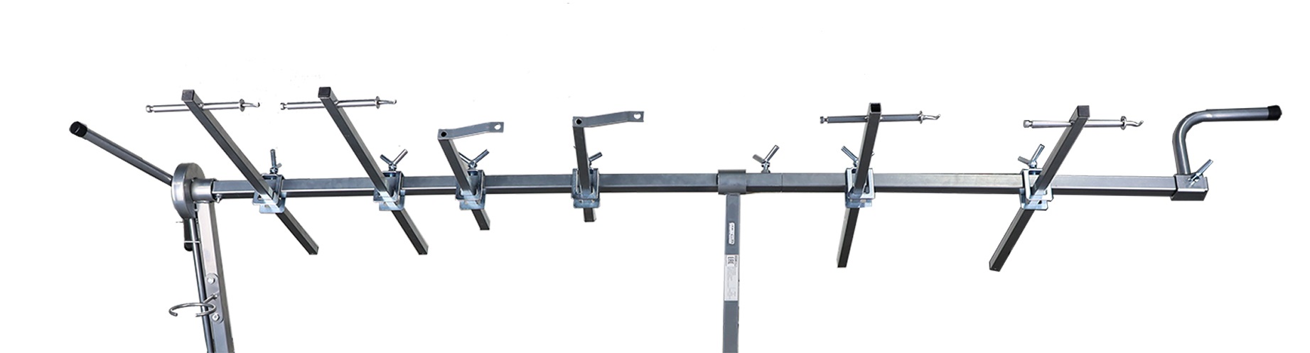 на нижней перекладине размещены 2 крюка для хранения неиспользуемых элементов;