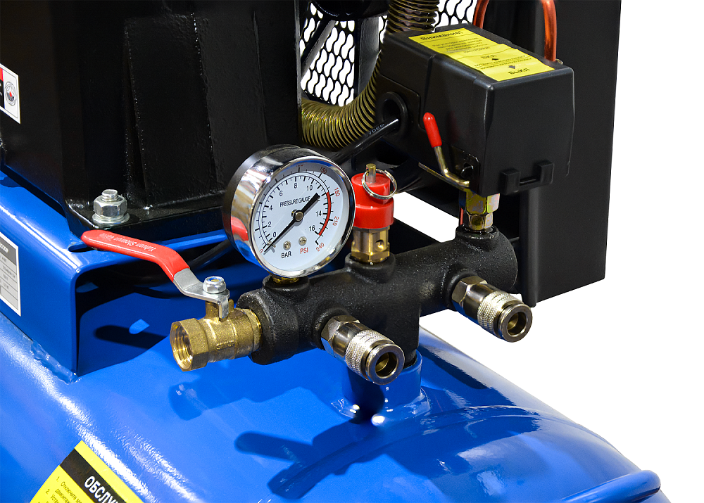 После проверки уровня масла, подключения к электросети и воздушным коммуникациям компрессор готов к работе.