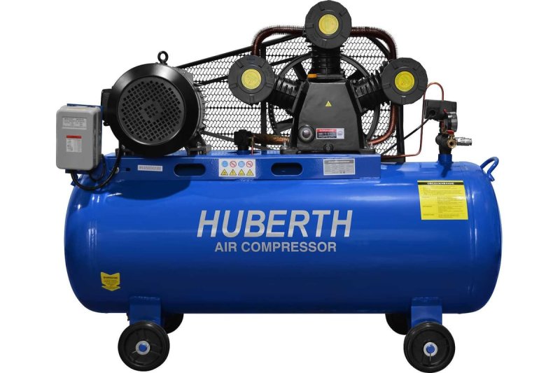 Поршневой воздушный компрессор Huberth с ремённым приводом оснащён 200-л ресивером горизонтального расположения и рассчитан на эксплуатацию на автостанциях, окрасочных и шиномонтажных мастерских, в промышленности и прочих сферах деятельности, где регулярно требуется применение сжатого воздуха.