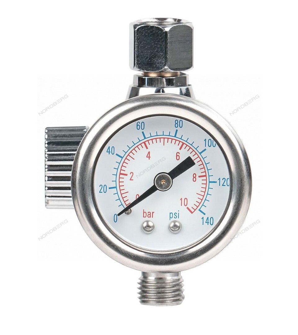 Регулятор давления воздуха для краскопультов NORDBERG NP8003 предназначен для оперативной настройки давления воздуха непосредственно в процессе покраски.