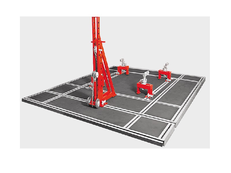 Основа стапеля - модульная рама, которая собирается с помощью крепежных деталей и монтируется в подготовленный приямок заподлицо с полом. Модульная система позволяет легко собирать один или несколько постов необходимых размеров.