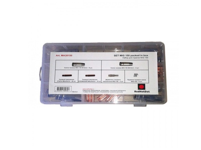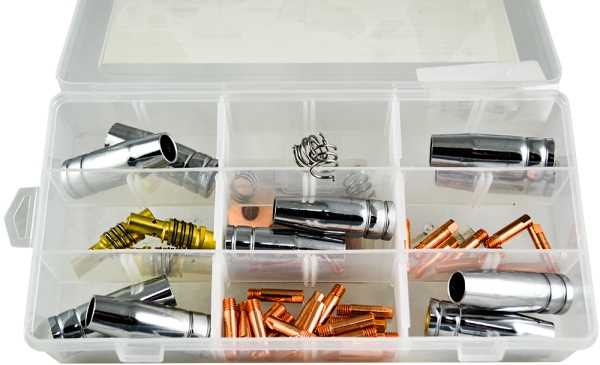 Универсальный набор запасных частей для горелок, входящих в комплект полуавтоматических сварочных аппаратов.
