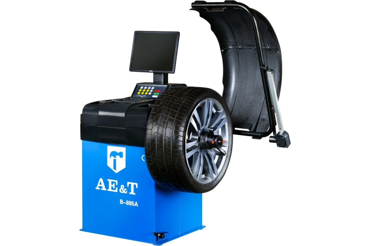 Балансировочный стенд AE&T B-885A представляет собой электромеханическую машину с вращающимся балансировочным валом и приспособлениями для монтажа колес на балансировочный вал колес автомобилей. Стенд позволяет работать с колесами с диаметром колесного диска 10"~24", шириной диска 1,5" до 20" и с максимальным весом до 65 кг.