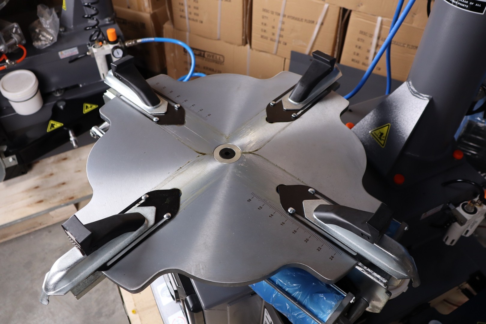 - Входящие в комплект станка пластиковые защитные накладки на зажимные кулачки предотвращают повреждение диска на протяжении всего процесса шиномонтажных работ