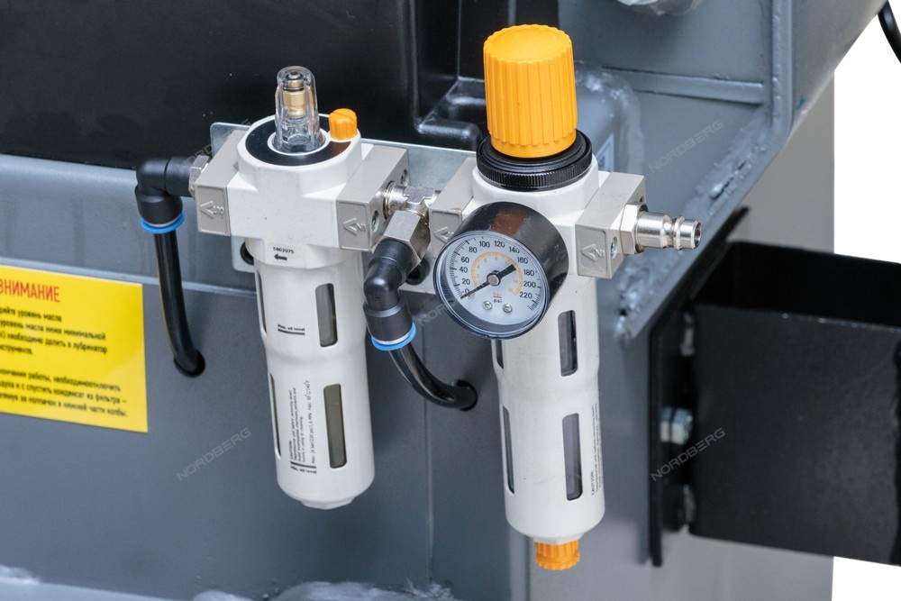 - Манометр для контроля уровня давления воздуха смонтирован на монтажной стойке