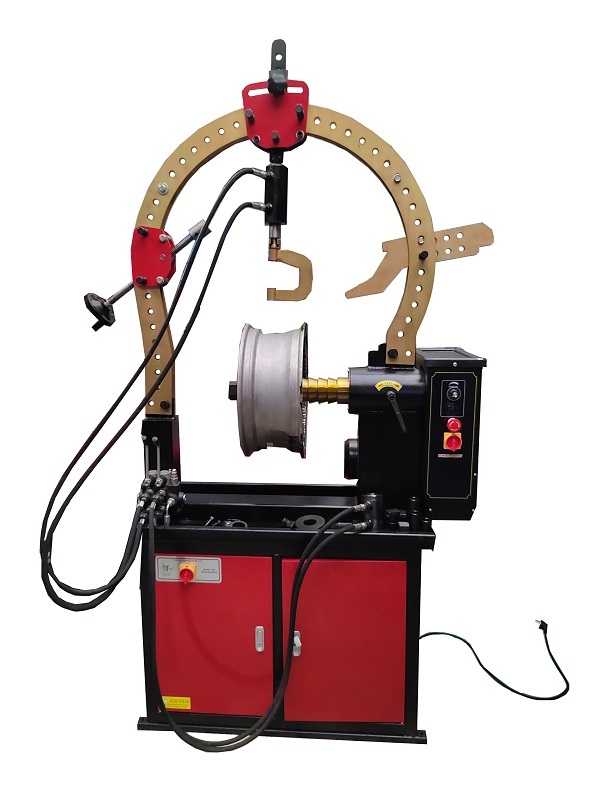 Стенд предназначен для проведения ремонтных работ (правка геометрии) литых и кованных легкосплавных дисков автомобилей от 10 до 28 дюймов включительно, путем воздействия гидравлического цилиндра на обод диска. Гидравлический цилиндр приводится в действие от гидравлического насоса, работающего от напряжения 220В. Диск закрепляется на планшайбе, имеющей пазы для возможности установки дисков с разным расположением фиксирующих винтов. Планшайба позволяет повернуть колесо в необходимое для ремонта место. Возможно дооснащение стенда дополнительными опциями, поставляемыми отдельно. В комплекте со станком поставляются рихтующие насадки и удлинители для правки наиболее распространенных повреждений дисков.
