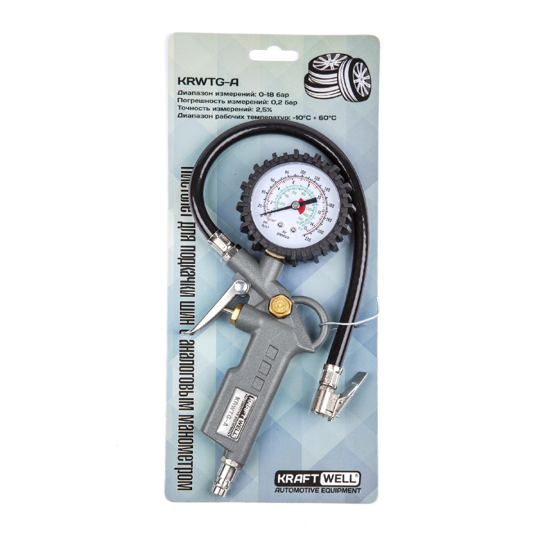 Пистолет для подкачки шин с аналоговым манометром KraftWell арт. KRWTG-A характеристики