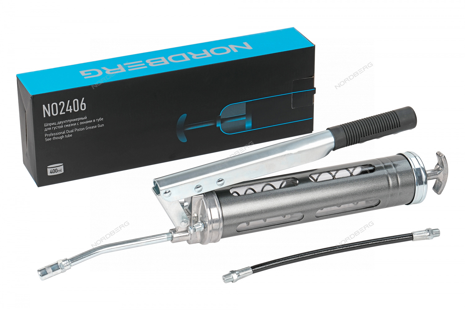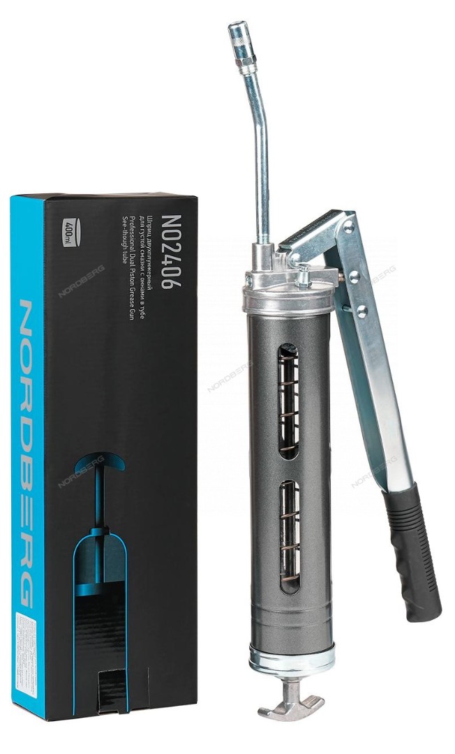 Шприц двухплунжерный для густой смазки с окнами в тубе, 400 мл NO2406 Nordberg характеристики