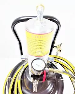 Солидолонагнетатель. Емкость бака - 20л. Скорость подачи смазки - 0,85 литра/минута. Рабочее давление - 0,6-0,8 МПа. Коэффициент сжатия - 50:1. Давление на выходе - 30-40 МПа