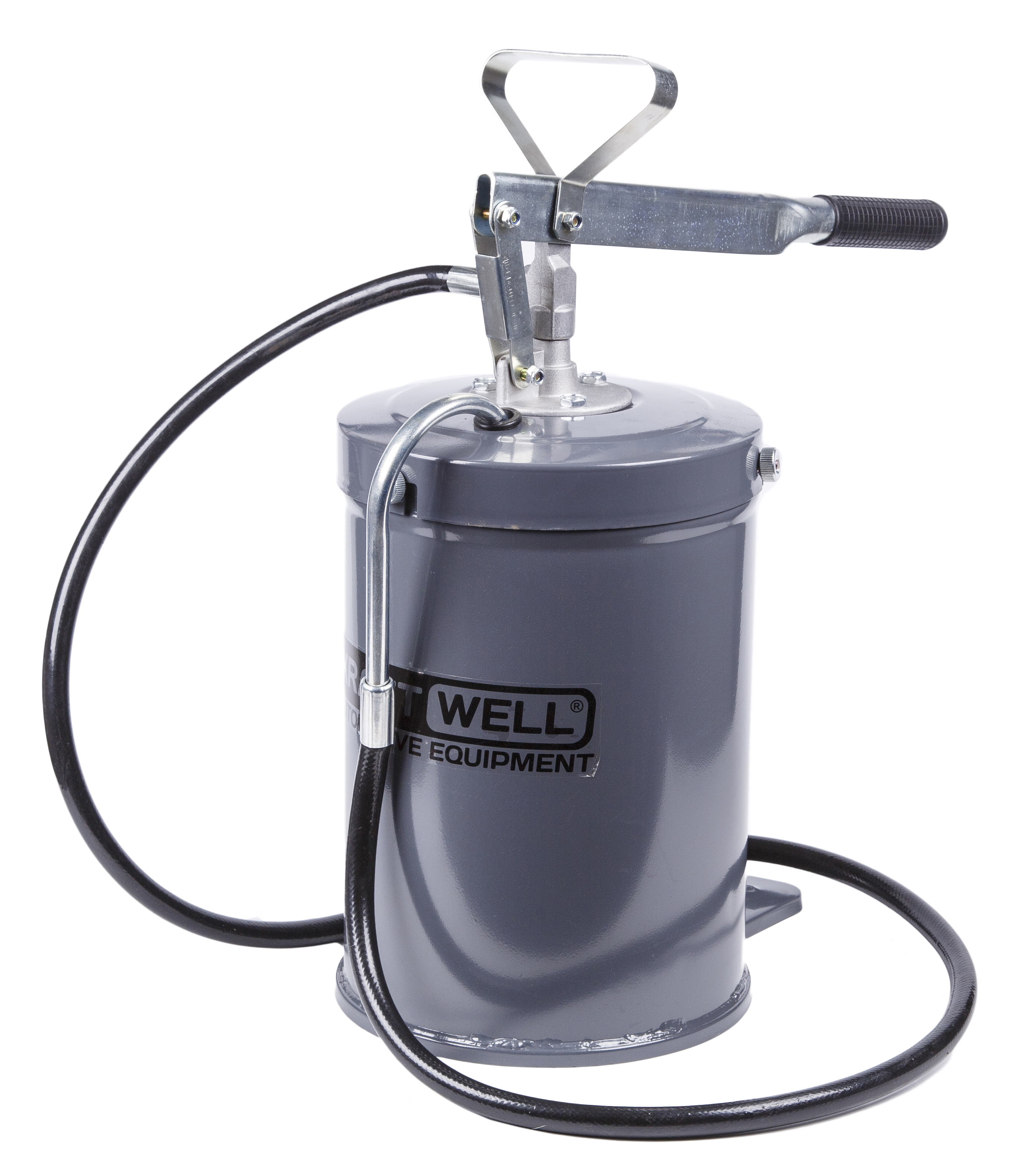 Нагнетатель масла с ручным приводом KRW1795A представляет из себя стальную емкость объемом 5 литров с рычагом, воздействуя на который создается давление, необходимое для нагнетания масла. Благодаря небольшим габаритам и рукоятке в верхней части обеспечивается мобильность и удобство использования нагнетателя в удаленных от станции техобслуживания местах. Для этого его заранее заправляют необходимым количеством масла.