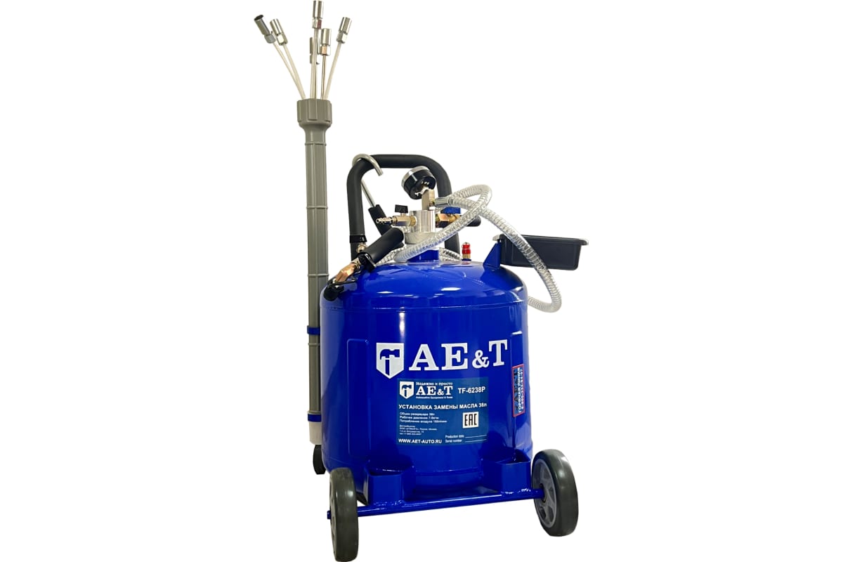 Установка замены масла AE&T 38 л, щупы TF-6238P - установка для замены отработанного масла через щупы. Давление воздуха на слив 0.6-0.8 бар.