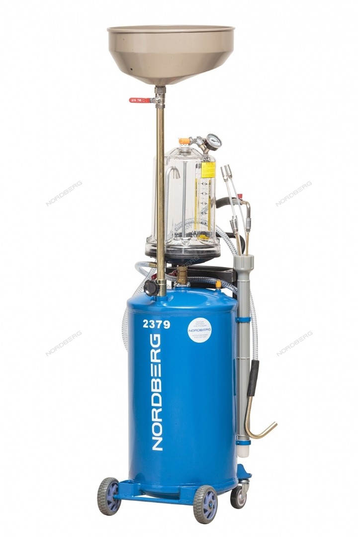 Установка для замены масла NORDBERG (2379) 2379B предназначена для удаления отработанного масла и других жидкостей из любого транспортного средства при помощи вентури-вакуумной вытяжной системы или свободным сливом.