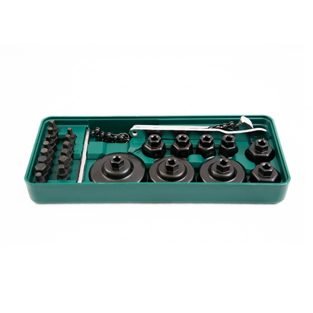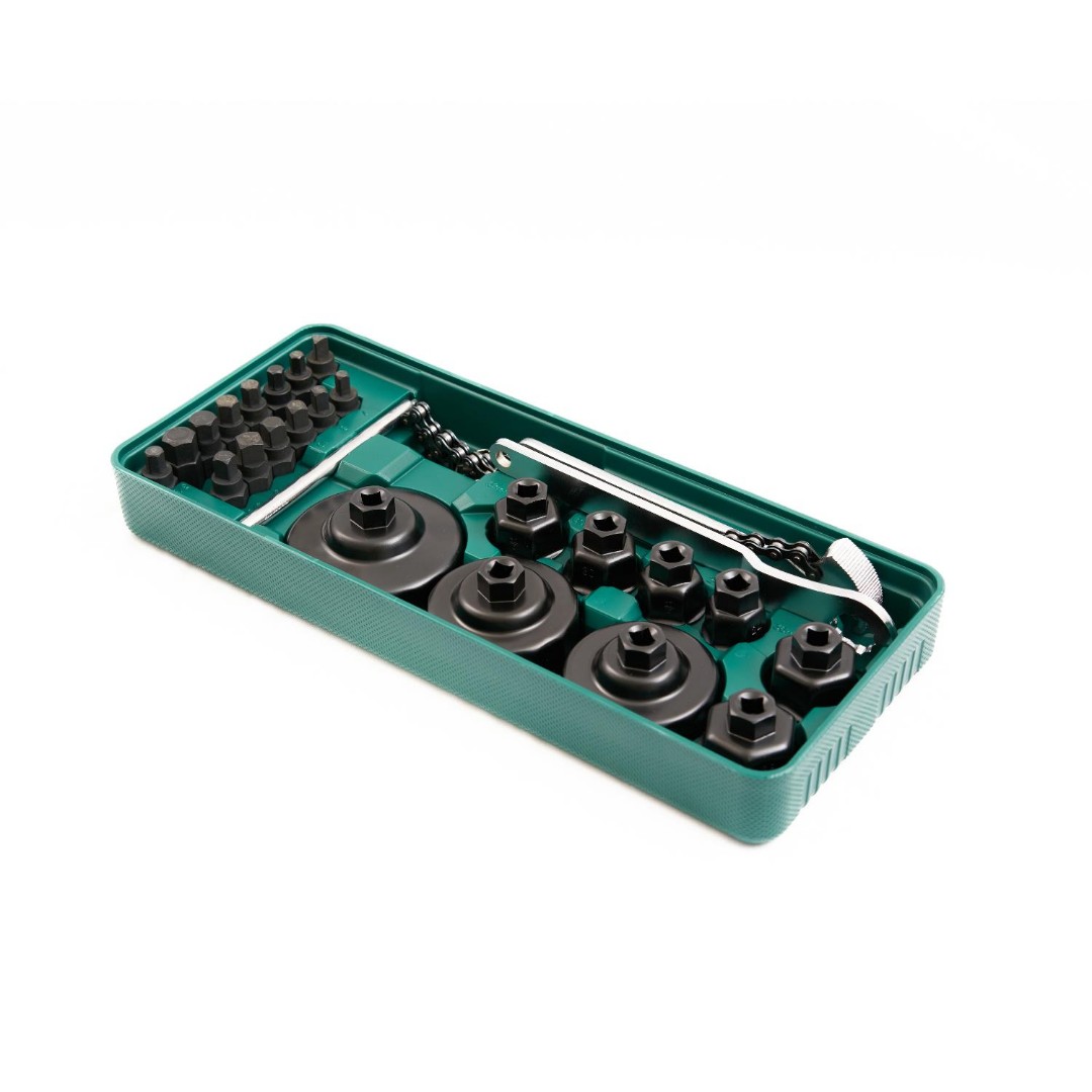 Набор LST025 состоит из съёмников чашечного типа, которые применяются на станциях технического обслуживания и автомобильных мастерских для демонтажа масляных фильтров. Набор изготовлен из высокопрочной стали, что увеличивает его износостойкость и срок эксплуатации. Поставляется в пластиковом ложементе, который надежно фиксирует элементы на своих местах, исключая их соприкосновение друг с другом, защищая от колебаний и полностью сохраняет заводской вид изделий.