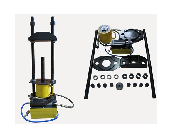 Использование данного оборудования позволяет, как выпрессовывать шкворень вышедший из строя, так и запрессовывать новый. Так же данный комплект можно использовать для выполнения любых других подобных операций, широко распространённых при ремонте, как грузовых, так и легковых автомобилей.