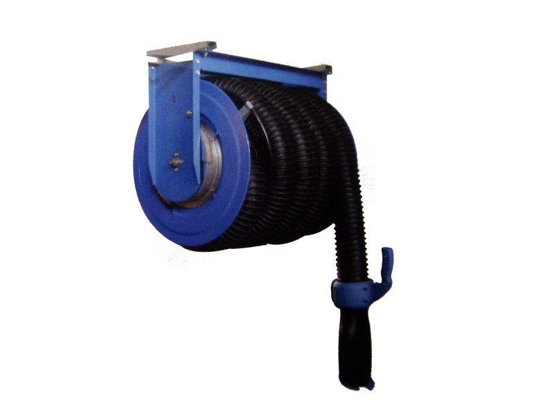 Изготавливаются из стальных листов с финишным покрытием из алюминиевого сплава. Оснащаются механической пружиной возврата для сматывания шланга. В комплект поставки входит: шланг из термостойкого армированного эластомера (TPE)., резиновое газоприемное сопло с рукояткой, стопор и салазки для крепления.
