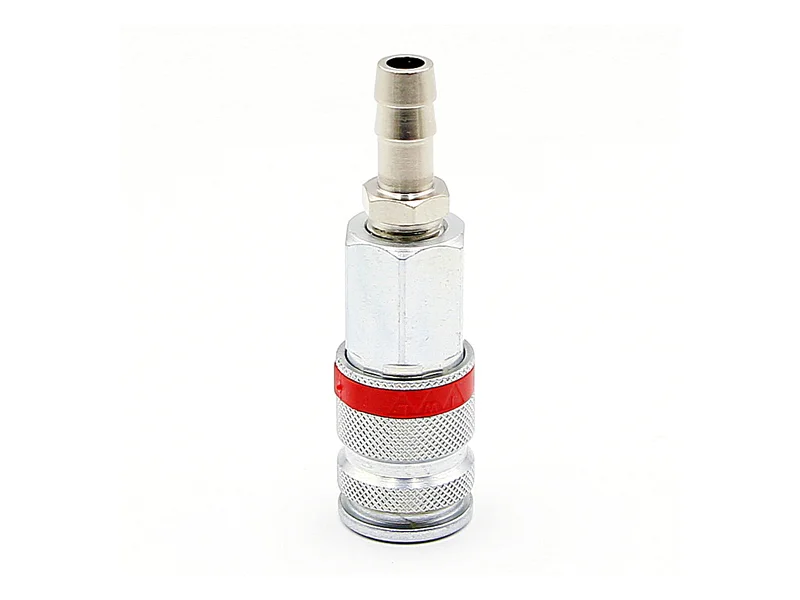 На другом конце муфты имеется наконечник, который вы с помощью хомута можете закрепить на постоянной основе в шланге с внутренним диаметром 10 мм. Воздушные шланги вы можете выбрать на нашем сайте здесь.