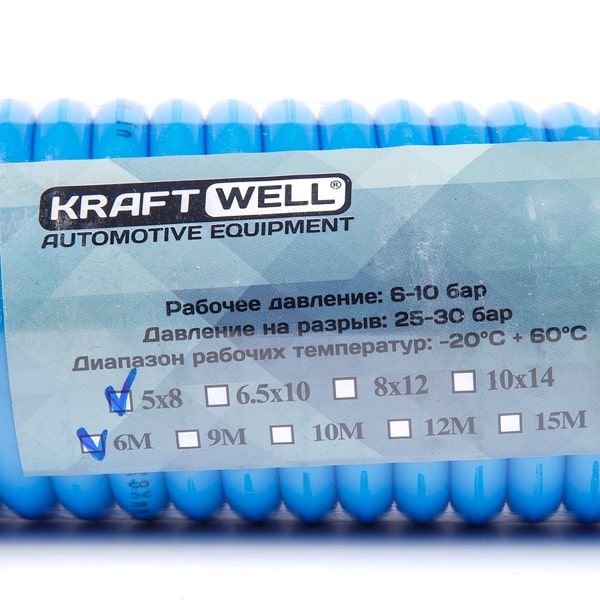 Шланг воздушный полиуретановый, спиральный D5х8 мм, 6 м KRW-HC050806 KraftWell характеристики