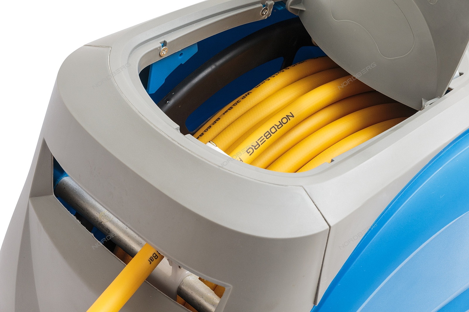 - Автоматическая катушка не позволяет шлангу запутаться или перетираться, что значительно облегчает работу с пневмоинструментом.