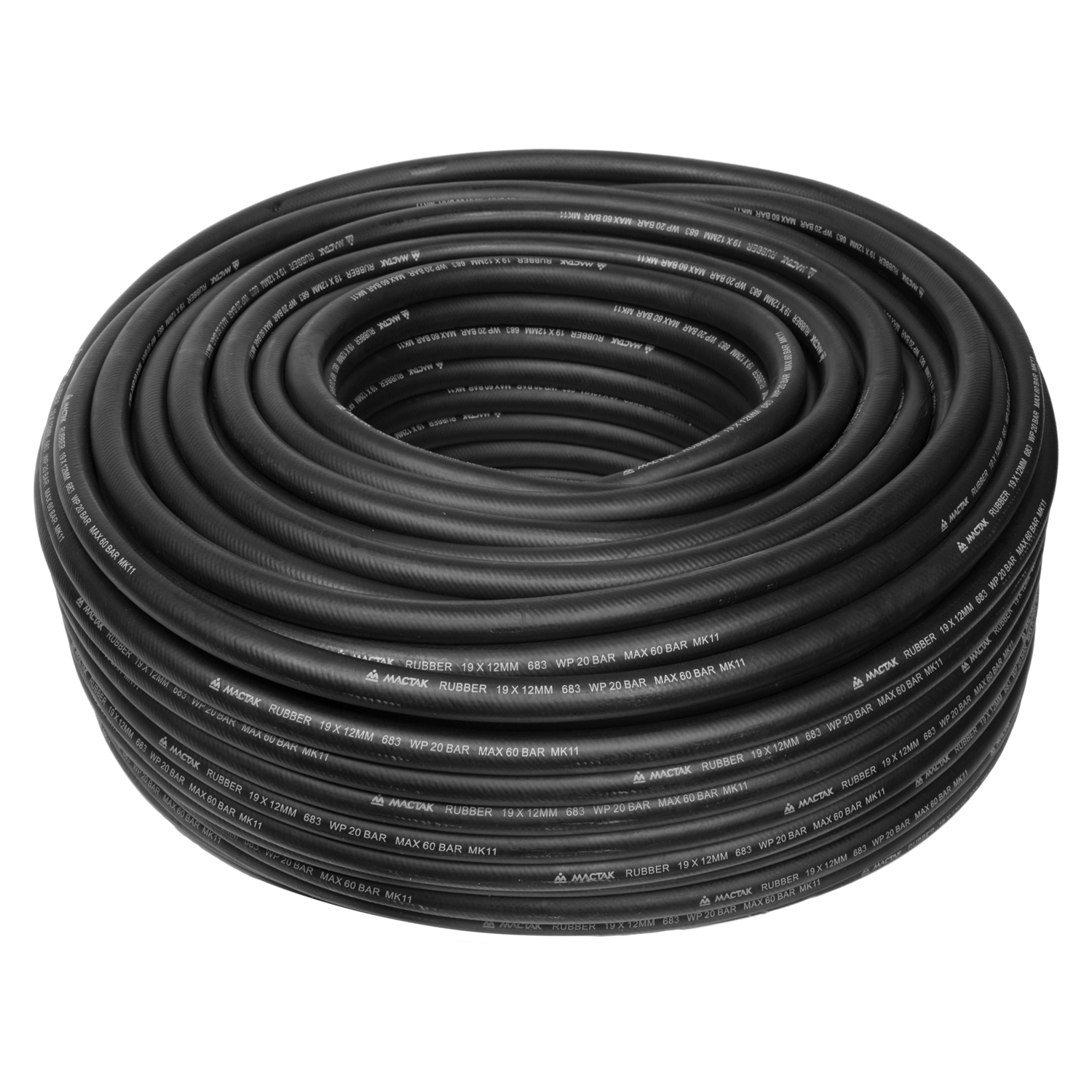 Шланг пневматический высокого давления 12х19 мм, бухта 100 м, резиновый МАСТАК 683-12100 характеристики