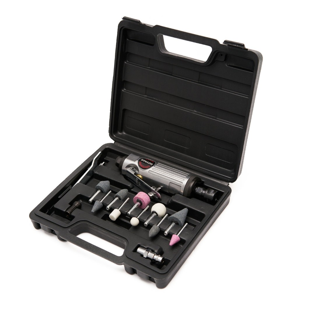 Пневмодрель с набором насадок, 22000об/мин, цанговый патрон ROSSVIK RT-1206K