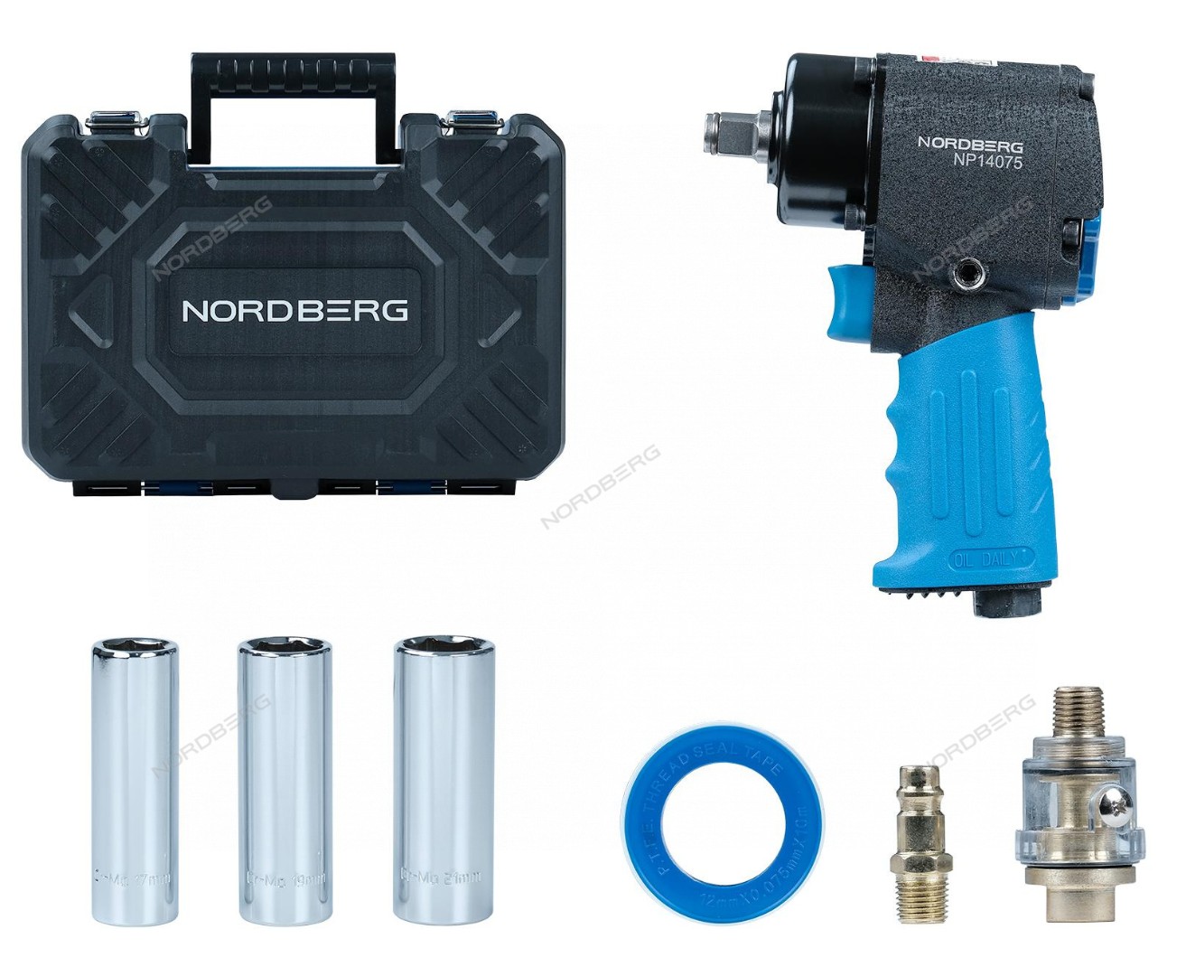 Пневмогайковерт ударный 1/2", 680Нм, укороченный, с 3мя головками в кейсе NORDBERG NP14075K характеристики