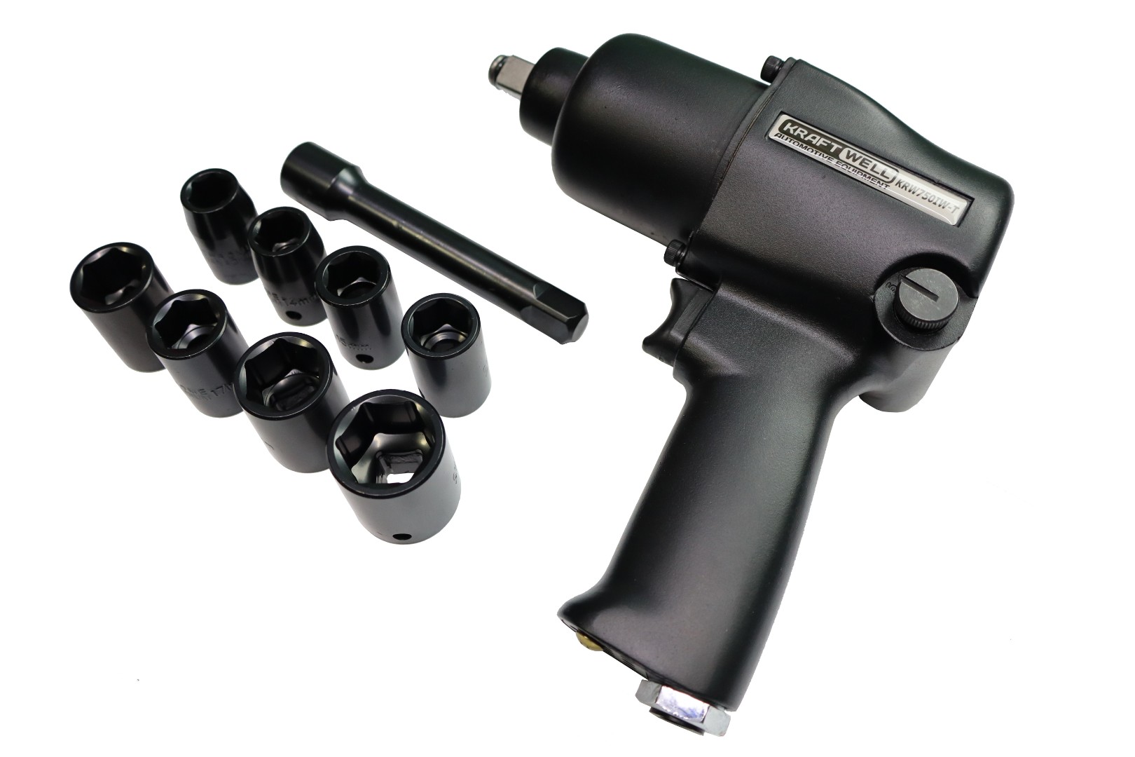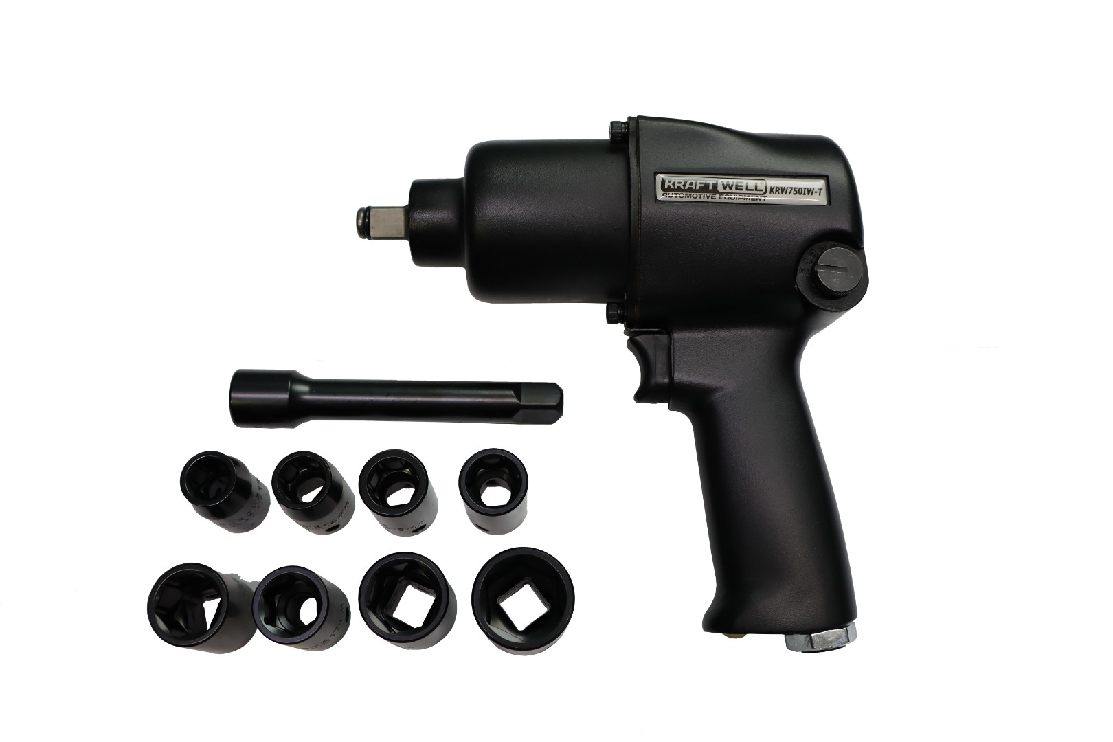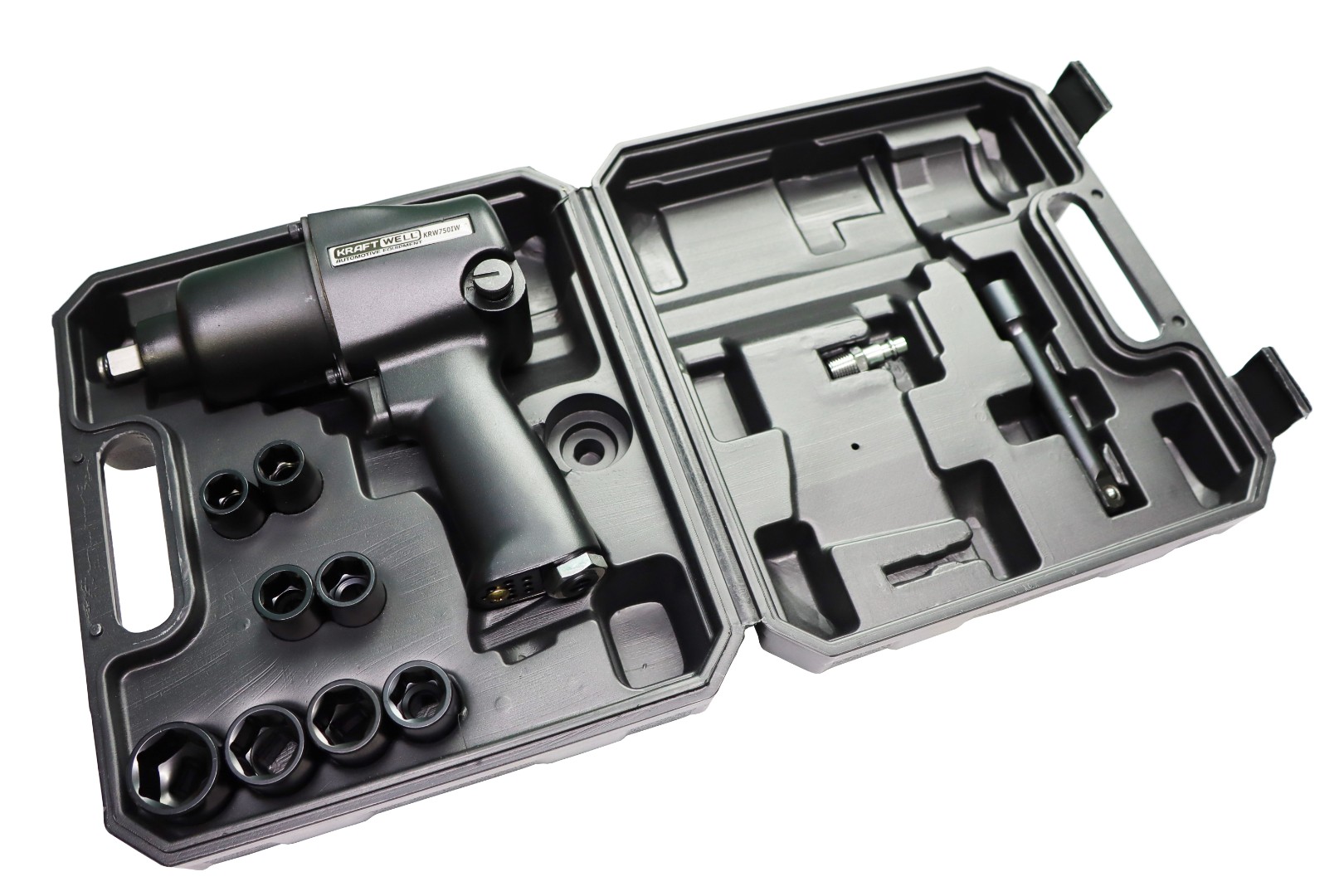 Гайковерт пневматический ударный 1/2 с комплектом ударных головок, 780 Нм KraftWell KRW750IW-T