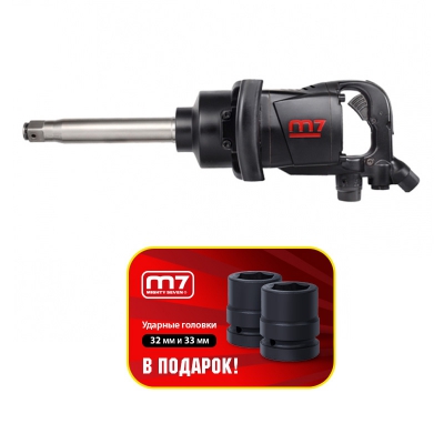 Гайковерт пневматический ударный 1", 2441 Нм, удлинённый, в комплекте 2 торцевые головки MIGHTY SEVEN PNC-8343-8 характеристики