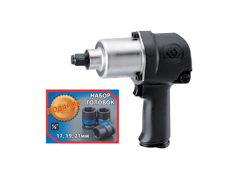 Гайковерт пневматический ударный 1/2", 678 Нм, в комплекте 3 торцевые головки KING TONY P33411-040B характеристики