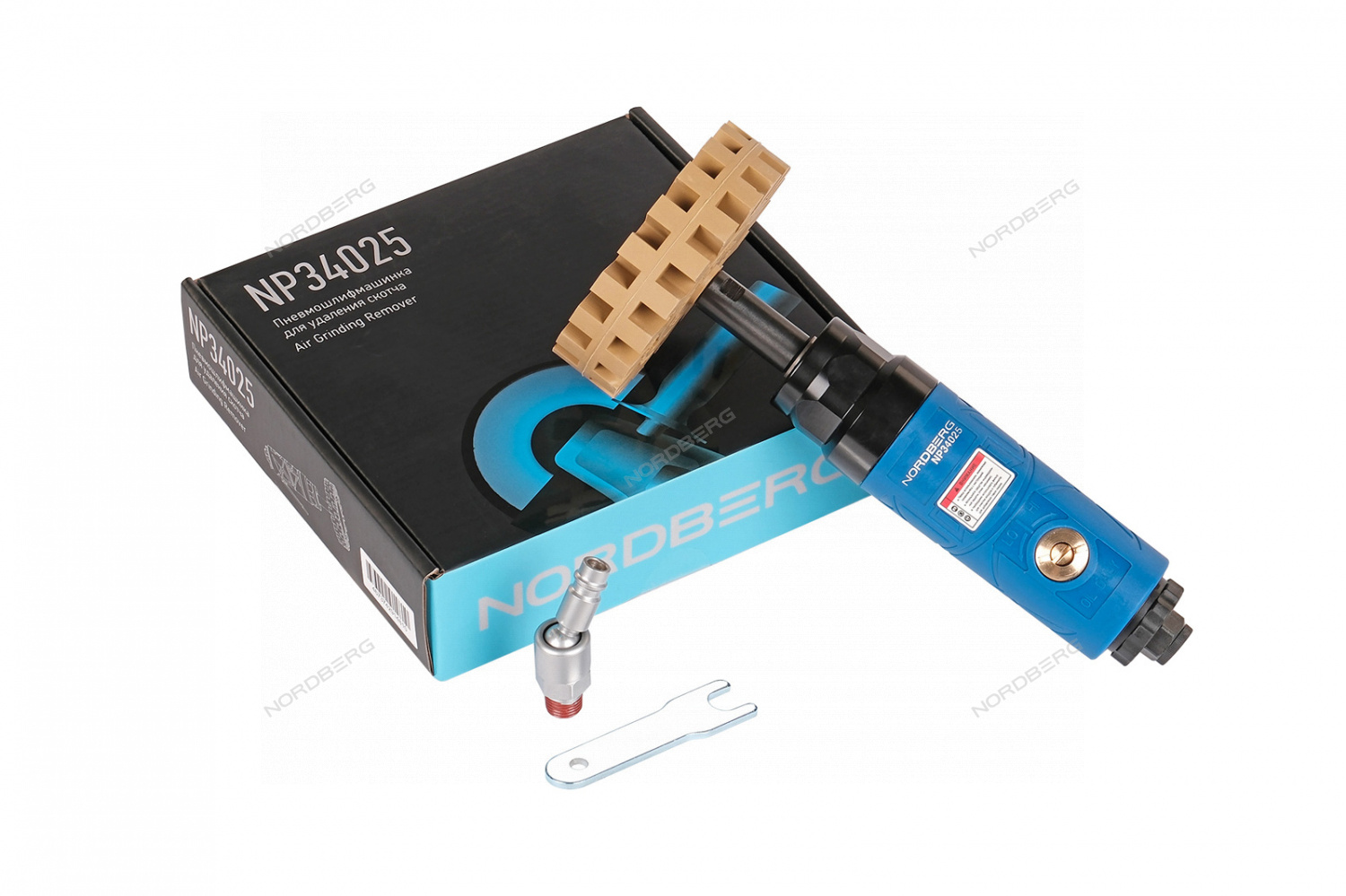Пневматическая шлифовальная машинка для удаления скотча NORDBERG NP34025 – специализированное оборудование для автосервисов, станций шиномонтажа и автотранспортных предприятий.