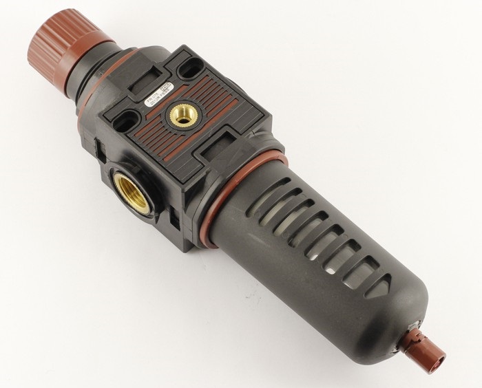 Регулятор давления может устанавливаться как отдельно от фильтра, так и в одном блоке с ним. С его помощью можно установить требуемое давление воздуха, а контролировать давление позволяет манометр (поставляется отдельно).