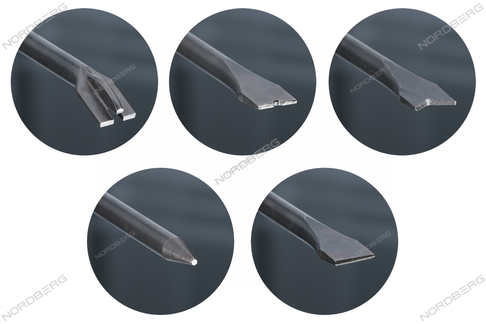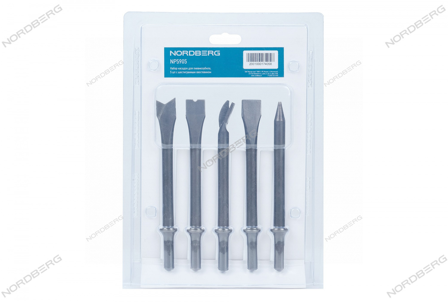 Набор насадок для пневмозубила, 5 шт с шестигранным хвостовиком NORDBERG NP5905 характеристики