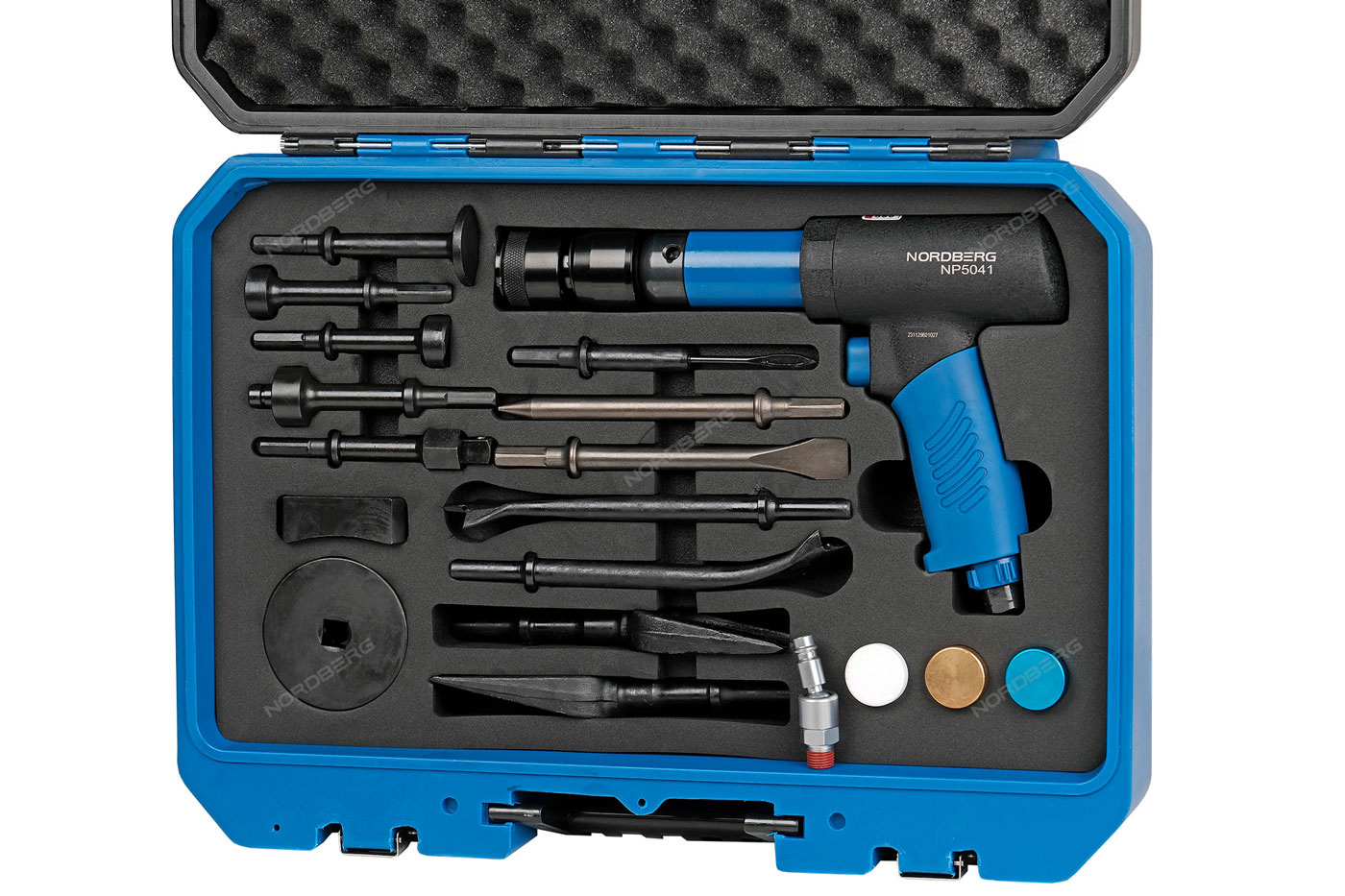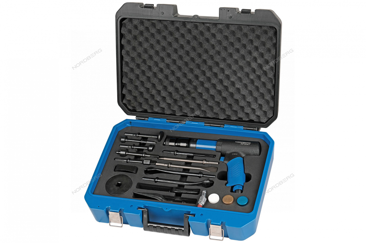 Пневмозубило усиленное 234 мм, с комплектом насадок и быстросъемным держателем в кейсе, 20 предметов NORDBERG NP5041K