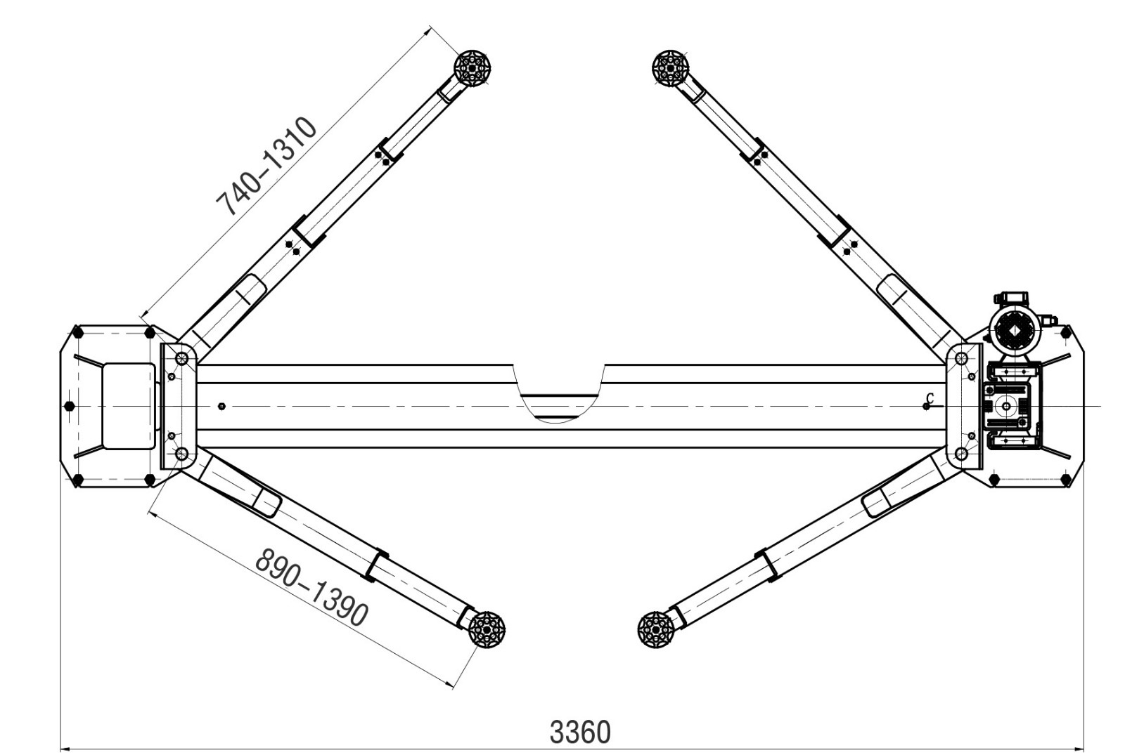 Двухстоечный электрогидравлический подъемник с нижней синхронизацией KRAFTWELL KRW4SLM оснащается каретками с лапами, расположенными снаружи, а не внутри каретки. Зубчатые сегменты, предотвращающие поворот лап в поднятом состоянии, так же находятся снаружи. Короткие лапы имеют длину 740-1310 мм, длинные 890-1390 мм. (2 шт 2-х секционные и 2 шт 3-х секционные лапы)
