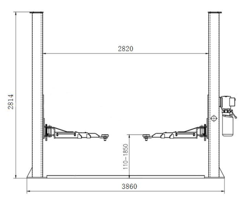 Грузоподъемность этого подъемника составляет 4000 кг. За подъем автомобиля отвечают два гидравлических цилиндра с цепным приводом каретки. Такой тип привода уменьшает нагрузку на гидроцилиндры и обеспечивает долговечность их работы. Каретки снабжены нейлоновыми ползунами, обеспечивающими плавное перемещение внутри стоек. Простая и, в тоже время, надежная система механических стопоров со снятием с двух сторон обеспечивает безопасное удержание автомобиля в поднятом состоянии на протяжении всего времени ремонта. Габаритная высота подъемника составляет 2826 мм и позволяет устанавливать его в помещениях с высотой потолка от 3 метров и выше.