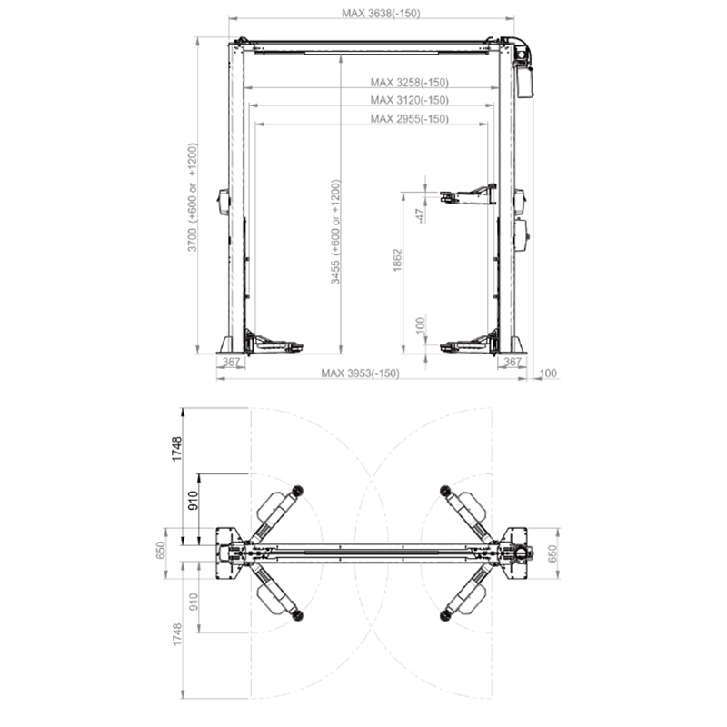 - Автоматические предохранительные стопоры обеспечивают максимальную безопасность при работе с поднятом на подъемнике автомобиле.