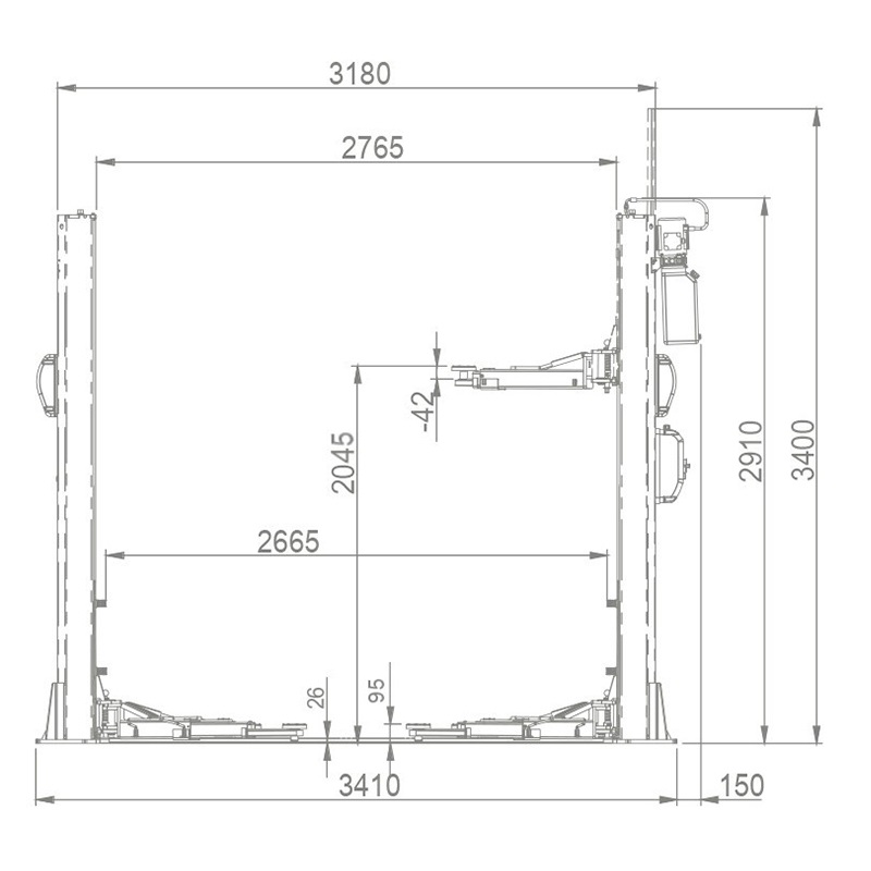 Электрогидравлический двухстоечный подъемник г/п 4,5т ral7016 bright alpha 45 характеристики