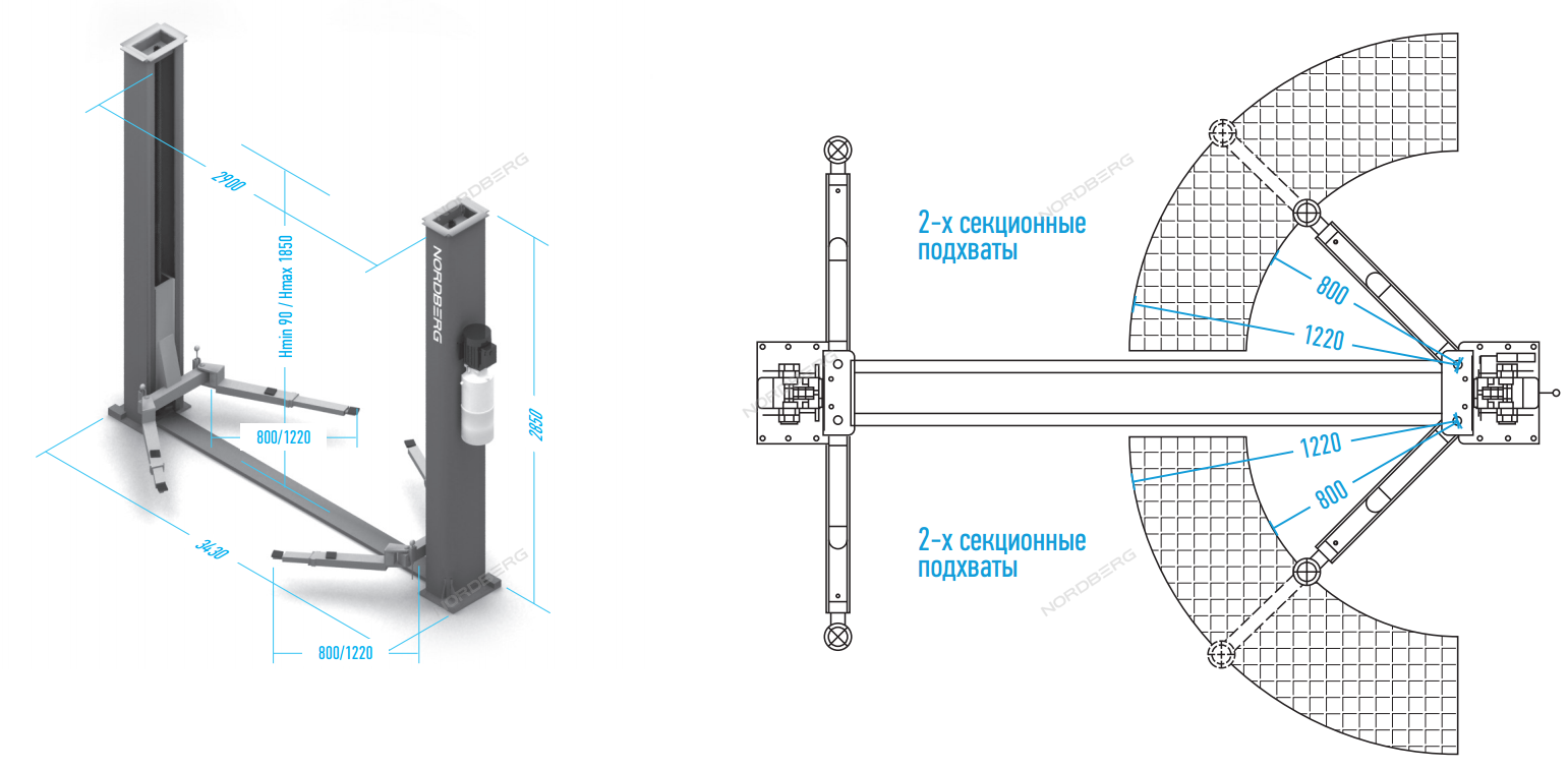 Электрогидравлический двухстоечный подъемник г/п 4 т, 220 В, синий Nordberg N4120B-4B_3+2_220